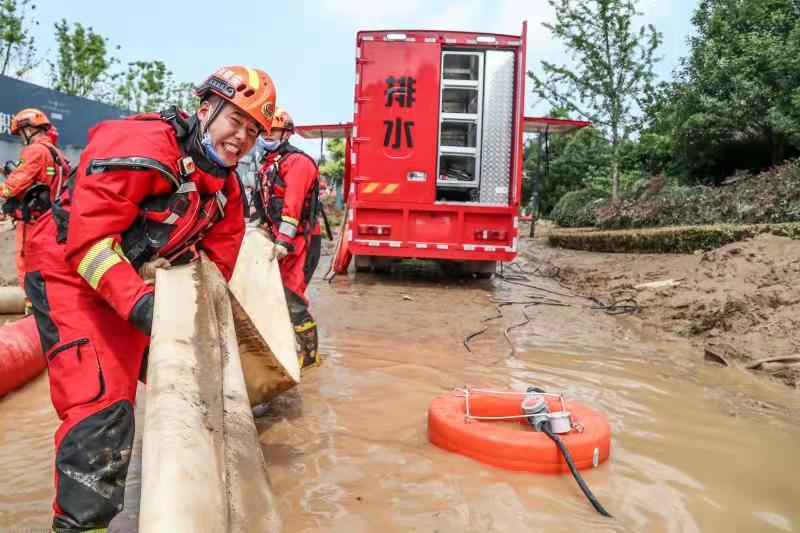 雨已停,水未退!24日开始,郑州持续高温,在新鑫花园、金成广场、正宏城等60多个排涝点作业的消防员顶着烈日酷暑,忍受着机器轰鸣的噪音,持续作战。