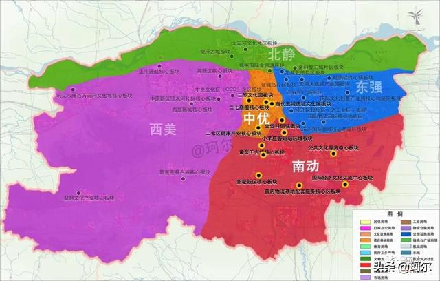 郑州总体规划中,针对城市发展空间将形成“东强、南动、西美、北静、中优、外联”的大策略,其中东强,以郑东新区为依托,统筹经开区、中牟县部分区域,统筹国家自贸区、跨境电商综试区、国家大数据综试区、金融集聚核心功能区等战略平台建设,打造全省对外开放窗口、产城融合发展示范区和全国重要的先进制造业、现代服务业基地。